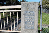 9/3/2008. The plaque is attached to the bridge built in 1965 over Gardiners Creek, Burwood replacing an earlier bridge built in 1913. This plaque is part of the City of Whitehorse, however because the bridge is part of the boundary between the two municipalities, it has been included. |